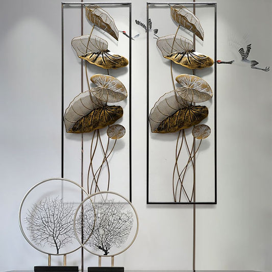35.8" 2 Pieces Metal Lotus Leaves Wall Decor Set for Living Room with Black Frame